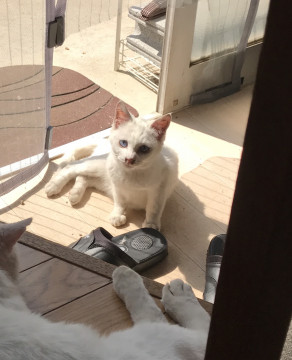 その後1週間程いましたが飼い猫が散歩する時一緒に出ていきました。元の家に帰ったのかと思いましたがまた1週間程で飼い猫の散歩帰りについてきて2週間いました。鼻水がありくしゃみもあったので昨日病院で治療を受けた所、腹部のキズが化膿しておりその治療でお腹に肌色のテーピングをしております。今日の夜中飼い猫と一緒に散歩にでかけましたが飼い猫だけ朝帰って来ました。いつものパターンではあるのですがお腹のテーピングが気になります。元々近所で暮らしている子かもしれず我が家をセカンドハウス的に使っている可能性もありますが治療中の為心配です。飼猫も元ノラなので頻繁に外出しますので連れてきてほしいのですが....。
