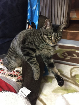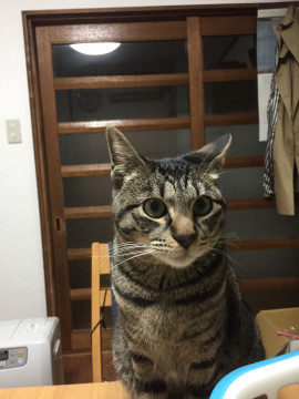 首輪はしていません。立派なヒゲとは長い尻尾が特徴です。野良子猫からは丸1年間、一度も外に出ていません。