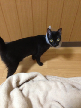 普段部屋のみで育ててます。年齢は1歳、三キロくらいの小さな黒猫です。左耳に避妊した証のカットがあります。二階のベランダから落っこちてしまって行方知れずです