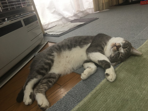 部屋の掃除をするため、一時的にハーネスにリードを付けて