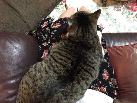 家の外では少し凶暴になりますが、首根っこを掴めばおとなしく運ばれます。