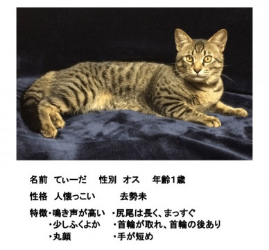 性格は人懐っこく、時々脱走する事がありましたが、今までは長くても半日で帰って来ていました。
