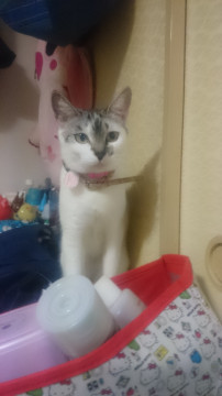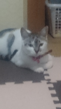小さい鈴のついた首輪にノミ避けの首輪をしています