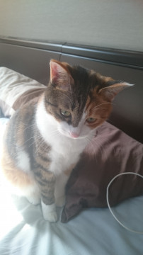三毛猫 しっぽは長いです 好奇心旺盛だけど怖がり 甘えん坊