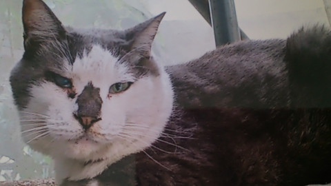 珍しいグレーと白の大きな猫です。去勢済み。体重6kg。生まれつき右目が白濁しています。居なくなる数日前ワクチン接種を受けているのですが、獣医さんから健康とお墨付きを頂いたほど元気でした。