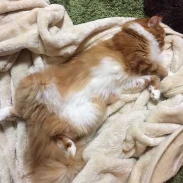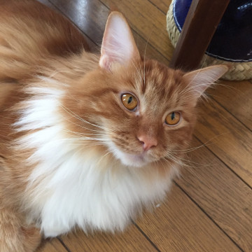 ・背中側が茶色、お腹側が真っ白(レッドタビーホワイトという色です)