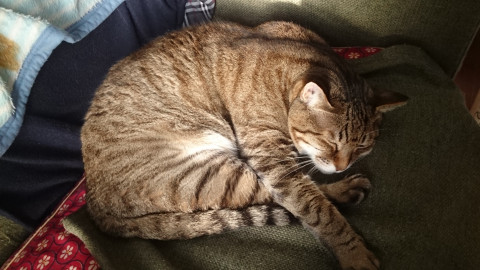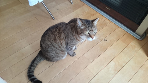 メス、長い尻尾、避妊済み、人懐っこい性格です。
