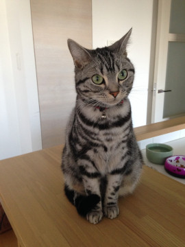 グレーの縞模様がくっきりしたアメリカンショートヘアです。