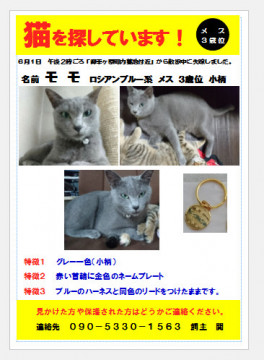 散歩中にハーネス・リードを装着したまま失踪しました。