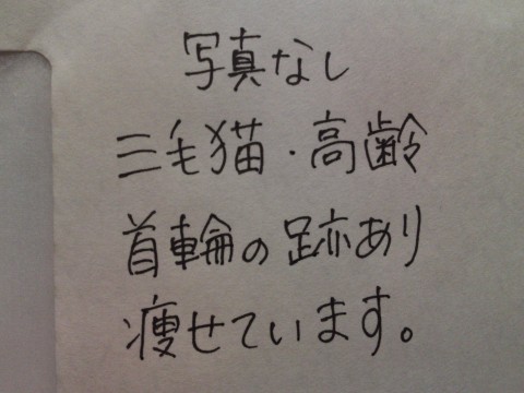 こちらで三毛猫(シマ)を保護していますが、神奈川なので違いますでしょうか?