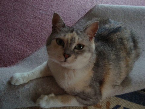 三毛をぼかしたような柄で、お腹の方は白毛です。