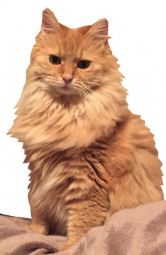 中型のベージュっぽい薄茶色の長毛のネコちゃんです。