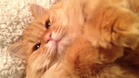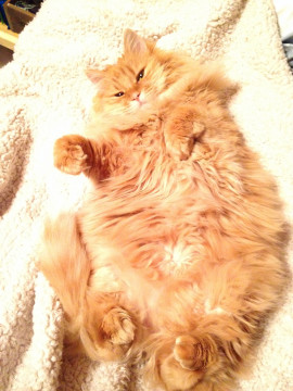 足は短めで、太くお腹の毛に埋まり気味です。