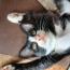 雨の中ずぶ濡れで 痩せていて弱っているみたいなので保護。 体を拭いて食事を与えて一晩経ちました。寝てばかりですが、だいぶ落ち着いたようです。 人になれているようですし、餌皿を見ると寄ってくるので飼い猫かなと思ってます。