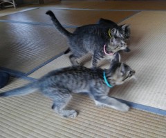 引越し先に住み着いていた親猫(みーこ)と赤ちゃん猫(チビ)、3ヶ月後にみーこが産んだ2匹(ここあ・みかん)、9ヶ月後にチビがうん産んだ4匹(1号・2号・3号・4号)・・・ 1号いずも・2号はる・3号...