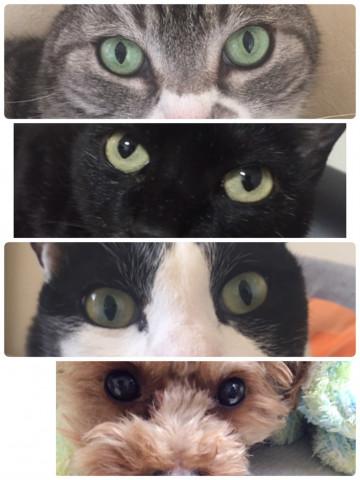 捨て猫だった三匹の猫と、譲り受けたトイプーと賑やかに暮らしています。