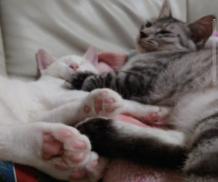 犬派の私が猫にハマりました! 迷い猫(黒猫)を保護し、そのお友達を探してたらこのサイトでおはぎちゃん(これまた黒猫)と出会い…そして今年おはぎのいた保護施設からの紹介で白猫さんと出会いました。 家...