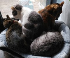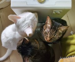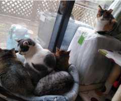 ご縁がたくさんあり、猫家族が増えてやや多頭の環境にありますが、スペース的には余裕があり、先住達は全員穏やかな性格で、新しい仲間を迎えても、ケンカやもめごとは一切ありません。子猫が仲間入りをすれば、お世話の取り合いをするくらいです。この頭数でこの仲良しは『奇跡』と言われています。
