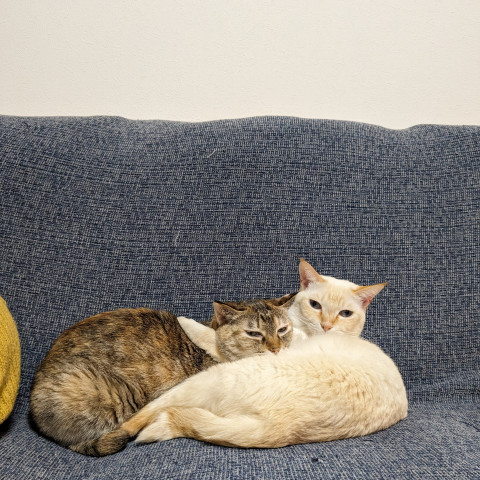もともと一緒に暮らしていた兄弟猫に加えて、こちらで黒猫をお迎えすることができました。