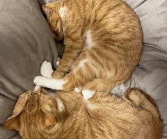 7歳になる茶白の猫ちゃん2匹と娘夫婦と孫ひとりと暮らしています。猫ちゃんは、男の子と女の子です。 男の子がレオで、女の子がライヤです。 名前の由来は、子どもの頃好きだったアニメの「ジャングル大帝レ...