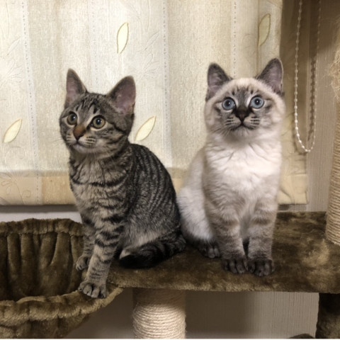 2019/12/28 シャム柄兄さんのカイとキジトラ柄の妹キュリを迎えました。2匹一緒に飼うのは初めてなので、兄妹仲良く遊ぶ姿に頬が緩んでます(ᐥᐜᐥ)♡ᐝ
