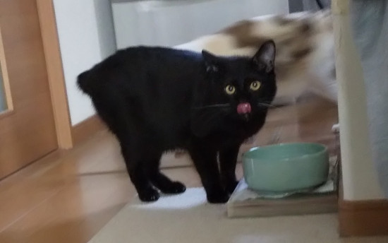 夫婦+小学生の娘、猫2匹で暮らしています。 猫との出会いは5歳のとき。祖母の家に帰省したときに雄の黒猫と出会いました。毎日遊びに来る黒猫にのり巻きを作ってあげていました。 8年後家庭の事情で祖母宅...
