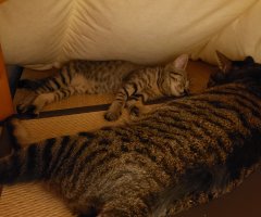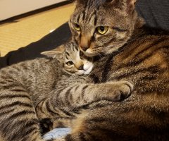 2020年6月、保護した子猫をそのままうちの子として迎え 初めての猫との生活がスタート 2021年11月、動物病院で保護されていた子をお迎え 人間2人と1ワン2ニャンで賑やかに暮らしています?