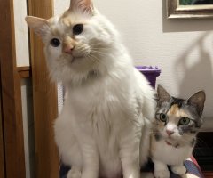 2匹の猫を飼っております。 先住猫は三毛猫でテトと言います。 後から来た白猫はバロンと言います。 テトは職場の人から引き取りました。バロンは保健所から引き取りました。 バロンは亡くなった白猫と...