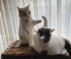 マンチカン、メインクーン(突然虹?に?) その後保護猫を迎え、サイベリアンも家族になりました。現在3ニャンの性格も体格もまるで違う愛すべきニャンコ達と暮らしています
