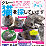 迷子になっている チョコ(♂8歳※迷子当時)を探しています! 2021年4月からの、ささいな情報でもかまいません。 土地勘のない場所で、迷子にしてしまいました。 グレーの成猫を見かけた方・保護...