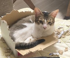 飼育崩壊している知人から譲渡して頂いた先住猫がいました。譲渡当時3ヶ月なのに600gしかなくコクシジウムがいる状態でしたが、今は元気に走り回ってます。 そこに二匹の男子を譲渡して頂き、人間の子供3...