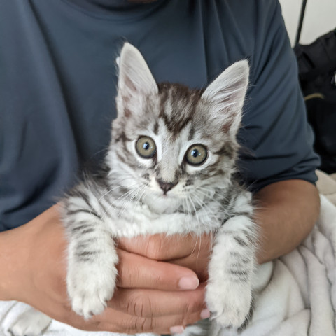 子猫を保護しましたがペット禁止物件の為、大家さんから許可を得て里親さんを探しています。 ドライフードを食べてトイレも猫砂でできる賢いけどやんちゃな子です。