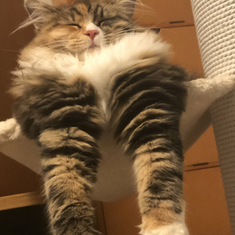 ノルウェージャンとサイベリアンのミックス1頭と夫と暮らしています。