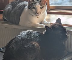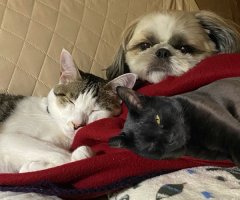 シャイなキジ白とら、天然な黒猫レオ、優しい兄貴シーズーだいきちの やんちゃな3きょうだいです?