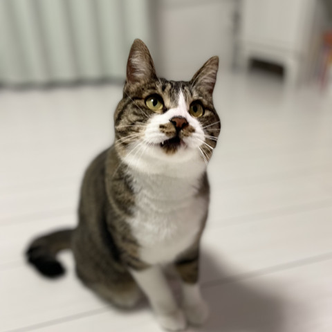 夫、小学生男子二人、私、雌猫一匹暮らしです