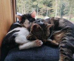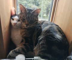 保護したキジトラ猫と家族6人で生活しています。