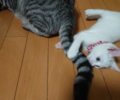 シッポと格闘中