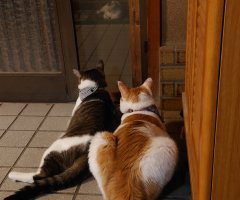 外のノラちゃんが気になる2人