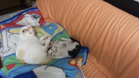 大阪市内在住の夫婦二人暮らしです。 H23.7に行政収容のオス猫(現在2歳)、 H24.5にネコジルシでオスの子猫(1ヵ月)の里親になり毎日癒されながらの日々です。