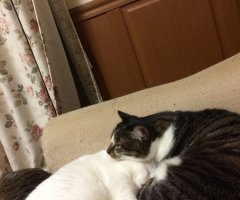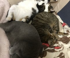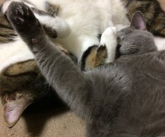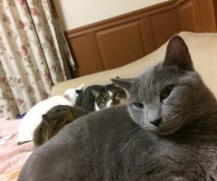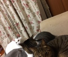 4にゃんの他に、チワワのライエル(ブルータンホワイト、♂、2012.8.16生)と同じくチワワのアセム(クリームホワイト、♂、2013.4.30生)がいます♪ でっかいアセムとちっちゃいライエルので...