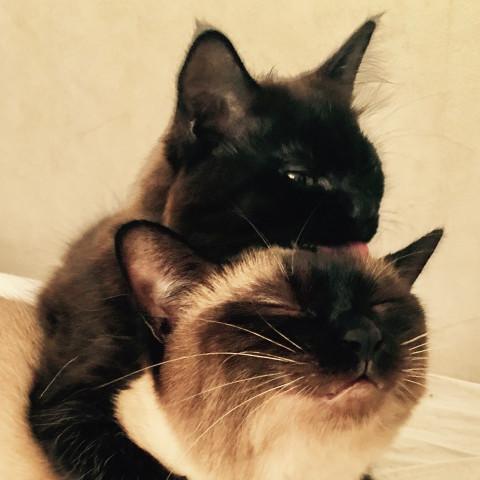 シャム猫「まろん」と黒猫「くぅ」仲良し!