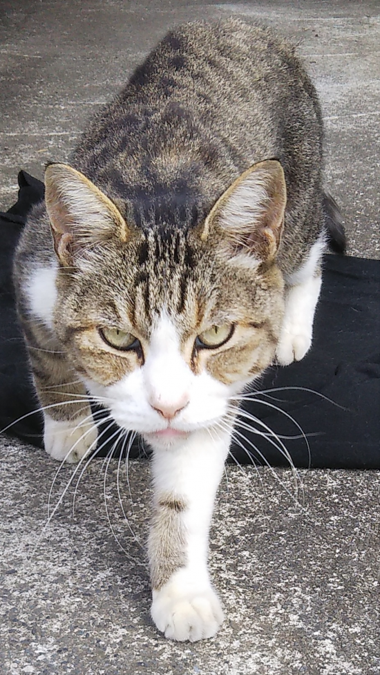 生後半年位の頃で車にはねられたところを保護。今ではすっかり元気。堂々と道の真ん中で寝るのはやめて!