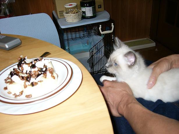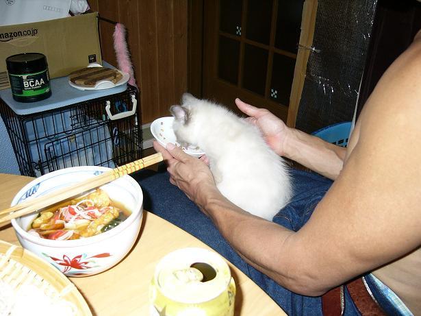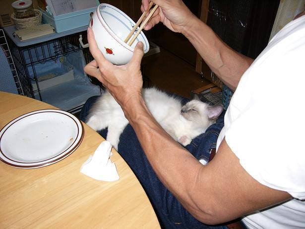 毎回のごはんの時間には、彼女は改造のGパンによじ登り~♪