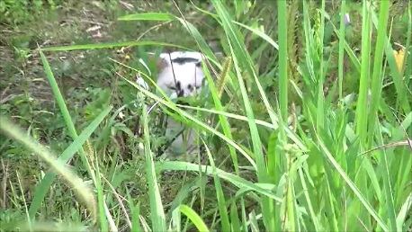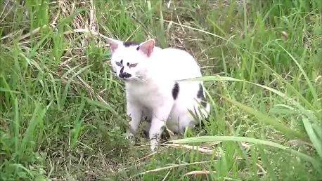 高知県は南国市を流れる一級河川「物部川(ものべがわ)」河口より、川上約5キロ地点にて、このブチねこチャンを発見したのが9月29日(月)でありました。