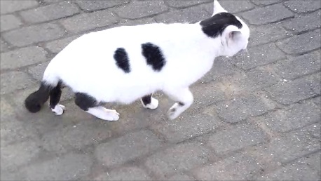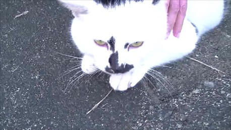 堤防の下で昼寝をしている、白黒ネコの「ブッチ君」に・・・。