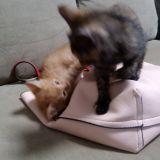 ココアちゃんが”どうもすみませんポーズ”&レオ君は頭隠して尻隠さずポーズ