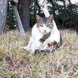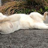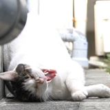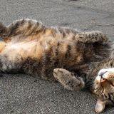 カメラを意識して照れながら歩道で横転3回する野良猫がかわいすぎる