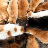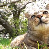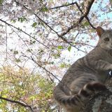 猫の親子と桜。母猫は妊娠中。数時間一緒に過ごしたら癒しの時間が流れた。