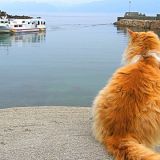 猫の島青島のゆるい日常。午後便のフェリーをながめるジュリー。