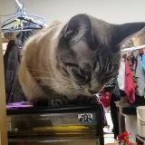 シャルルさんが とっても行きたがっていた 私のクローゼット上段の部分(笑) 今までは たまーに抱っこして乗せてもらえるくらいでしたが・・・ シーバの箱が落ちて、中に入れていたキャットタワーをタ...